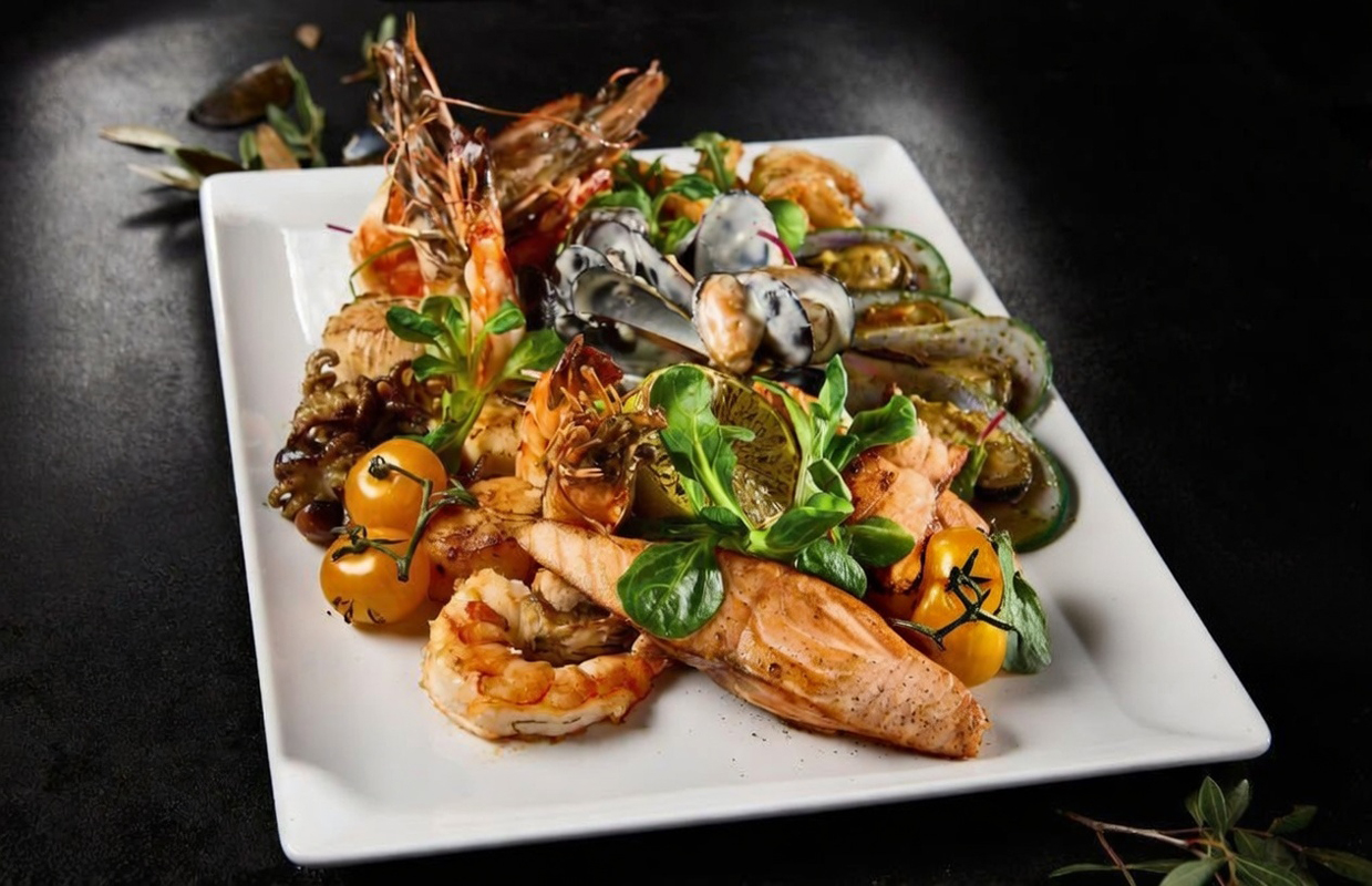 Indulge in the ultimate seafood experience with our Special Seafood Plate. A generous assortment of fresh seafood including fish, prawns, and calamari, cooked to perfection and served with a blend of aromatic spices, fresh vegetables, and a touch of tangy sauce.
